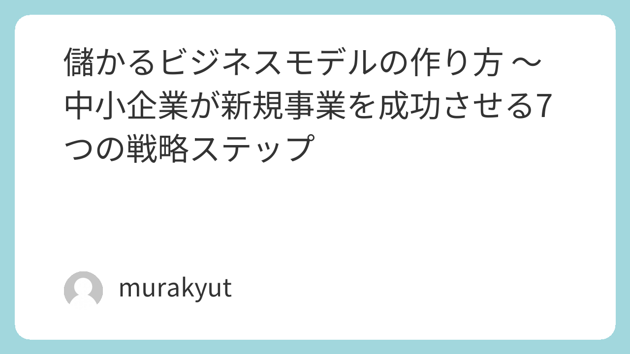 儲かるビジネスモデルの作り方 〜新規事業を成功させる7つのステップ